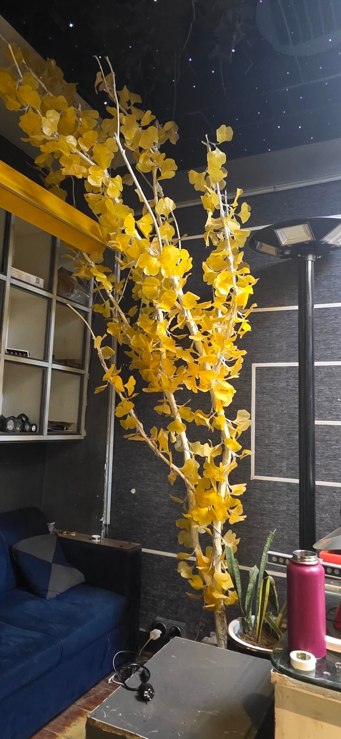 Matetial: Painted tree trunk plus ginkgo leaves light